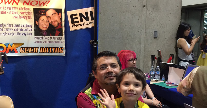 2010 - 2017(ish) And of course any con Dino was invited to as an autograph guest, anywhere in the country, he would use as an opportunity to promote SoulGeek with flyers, postcards, and sometimes even hosting SoulGeek geek singles mixers as part of his appearances. Such mixers were particularly popular at DragonCon Atlanta. From 2008 thru 2019 Dino would run the SoulGeek booth as an official vendor at cons in California from San Francisco to Anaheim - usually with just Casey and then eventually with the aid of Taryn Allen, a SoulGeek volunteer who would became Dino’s Events Assistant. However, it was San Diego Comic-Con where the SoulGeek booth would make the biggest splash and the most appearances in a single run… 9 straight years from 2009 to 2018. Starting in 2011, two years into that San Diego run, Dino would start inviting many other celebs (mostly voice actors) to join him in the booth as signing guests. Over the years these guests would include: Phil Lamar, Gregg Berger, Richard Epcar, Ellyn Stern, Jennifer Hale, Phil Proctor, Katie Leigh, David Sobolov, Alexis Cruz, as well as Costumer Heather C. Harris, author MD Marie and webcomics creators JE Draft and of course Ben Paddon who would help Dino and Casey at any and all conventions whenever he could. By far and away though Dino and Casey’s most loyal booth guests would be Rikki Simons of “Invader Zim” fame and his wife comic-book creator Tavisha Wolfgarth-Simons. Dino, Rikki and Tavi got along so well that for the better part of a decade they would become fixtures at not just SDCC but at conventions across the country. And anywhere the SoulGeek booth went, from 2011 to 2019, so did Rikki and Tavi.