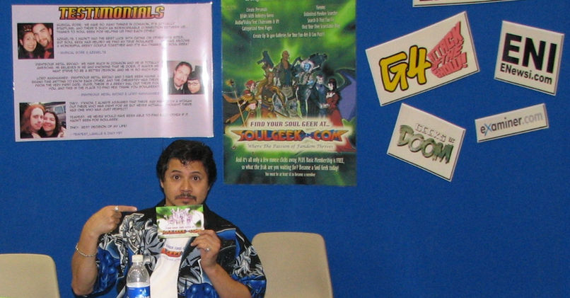 2009 Wondercon and SDCC From its very beginning SoulGeek.com has had a history with conventions. The debut of the site in July of 2007 was purposely planned to be just ahead of that year’s San Diego Comic-Con which typically draws some 120,000 attendees yearly making it the perfect place to promote the newly launched site. Dino, Casey and Casey’s daughter Jessica spent the entire convention walking the immense dealer’s hall passing out stacks of postcards announcing SoulGeek. It was truly exhausting, but it paid off by way of driving thousands of new members to the site. By the end of 2008 a booth would be purchased and banner art created in time for the beginning of the next year. By themselves Dino & Casey would premiere this new booth the weekend of February 27 2009 at Wondercon San Francisco to be followed by San Diego Comic-Con in July. In San Diego they would have Richard Hatch of “Battlestar Galactica” fame and “Jump Leads” webcomic creator Ben Paddon as signing guests. By the end of 2009 the “Batman: Arkham Asylum” video game would become a major hit making it possible for Dino to promote himself as an autograph draw for the booth thanks to his role in the game as the Scarecrow. Dino’s growing body of work (including most notably “World of Warcraft”) also helped.